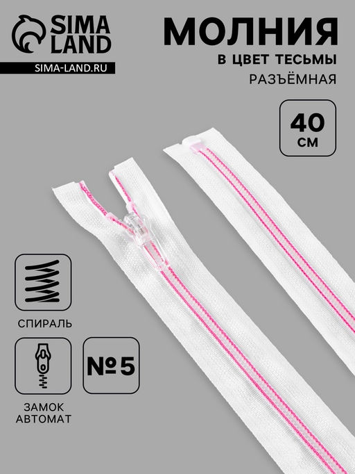 • Цена за 10 шт. Молния «Спираль», №5, разъёмная, замок автомат, 40 см, белая, розовая