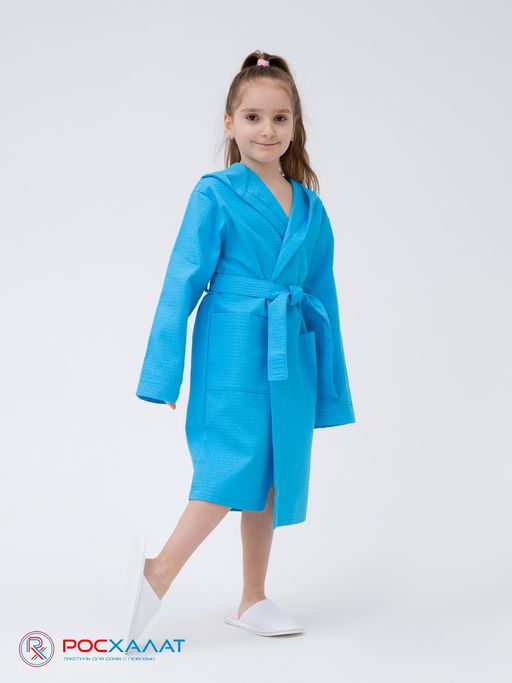 • Детский вафельный халат с капюшоном бирюзовый В-07 (14)