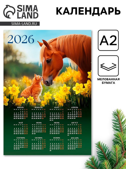 • Цена за 20 шт. Календарь 2026 настенный «Лошадь с котёнком», А2