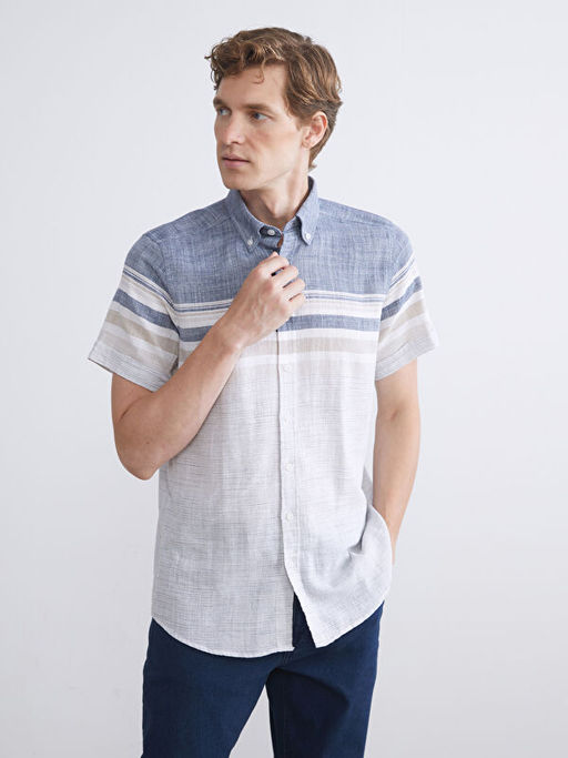 • Regular Fit K?sa Kollu ?izgili Arm?rl? Erkek G?mlek