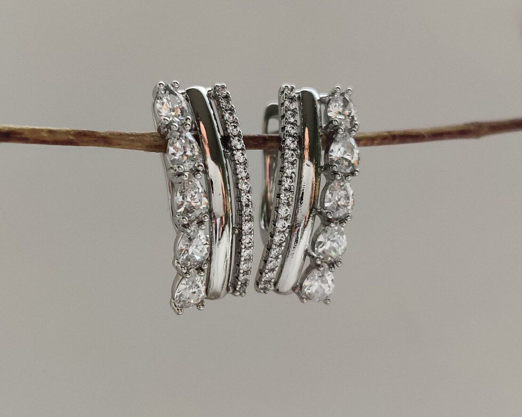Красивые серьги с благородными цирконами изготовлены из специального гипоаллергенного ювелирного сплава­