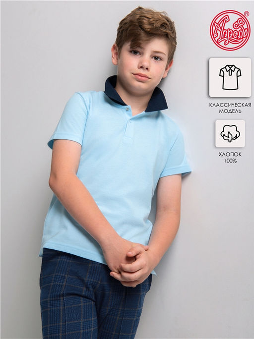 футболка-поло,хлопок 100%,пике / хлопок 100%,светло-голубой109+темно-синий77 / - / - / - / - / -,Футболка-поло для мальчика выполнена из хлопкового полотна. Изделие с короткими рукавами, с застежкой на кнопочки. Отличный вариант для школы! Уход: только машинная стирка (руками не стирать!) при температуре 40 градусов, без предварительного замачивания.
