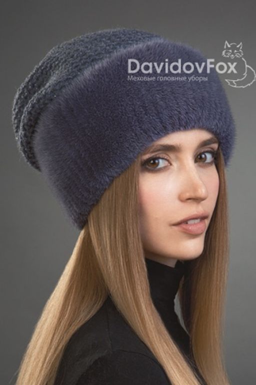 • Шапка Камелия норка трикотаж слива