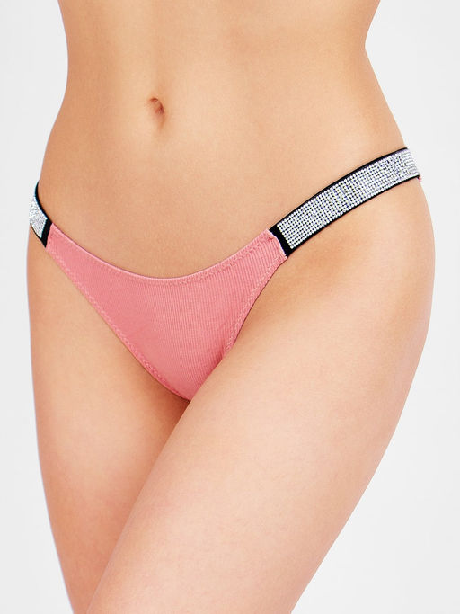 Трусики-бразилиана с заниженной посадкой и высокой линией бедра. Декорированы культовыми, невероятно мерцающими стразами с логотипом по бокам. Нежные и одновременно провокационные, изысканные и сияющие, повседневные, но роскошные.