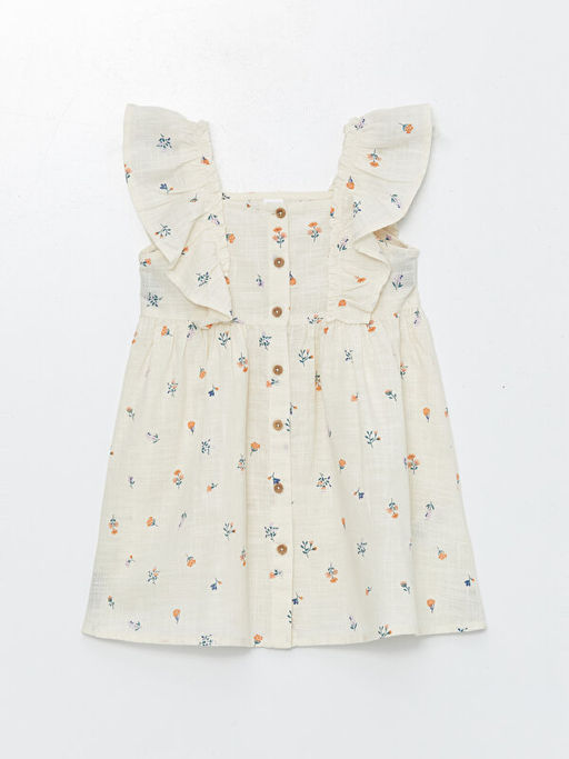 Kare Yaka ?i?ek Desenli K?z Bebek Elbise