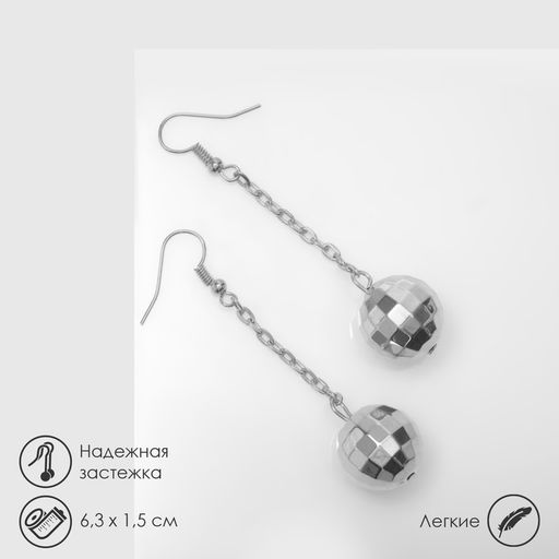 • Серьги висячие «Диско-шар», цвет серебро, 6,3см
