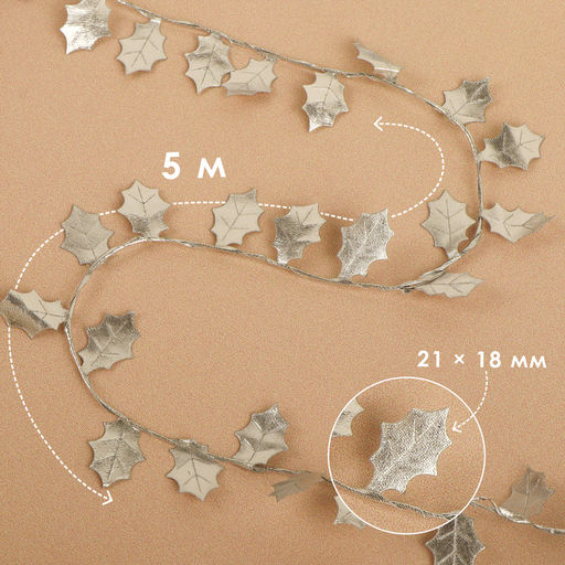 • Листья на металлической проволоке, 21×18 мм, 5 м, цвет серебряный