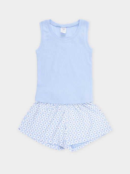 Трикотажная пижама для девочки с майкой и шортами. Майка изготовлена из эластичного трикотажа в рубчик. Шорты с эластичной резинкой в поясе выполнены из гладкого трикотажа супрем. Оригинальная набивка выполнена из стойких текстильных гипоаллергенных красителей. Изделие сохраняет цвет и форму после многократных стирок. Все трикотажные полотна производятся в соответсвии с нормами швейцарского сертификата ЭкоТекс. . Состав: 100% хлопок