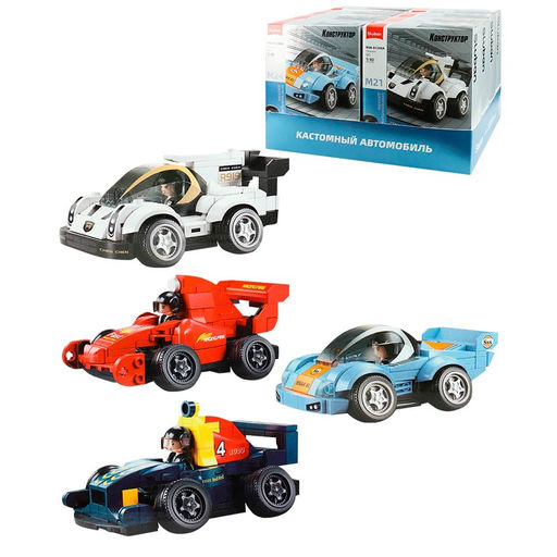 • Конструктор SLUBAN 151 - 164 дет. "Модель 1:40 гоночного дизайнерского авто" (M38-B1208A/B/C/D) 4 вида по 8шт. в блоке