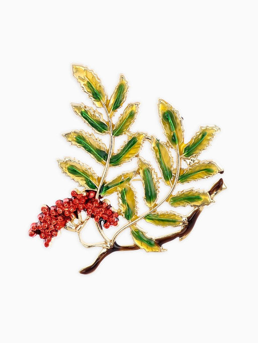 • Брошь "Ветка Рябины", цвет красно-зелёный в золоте