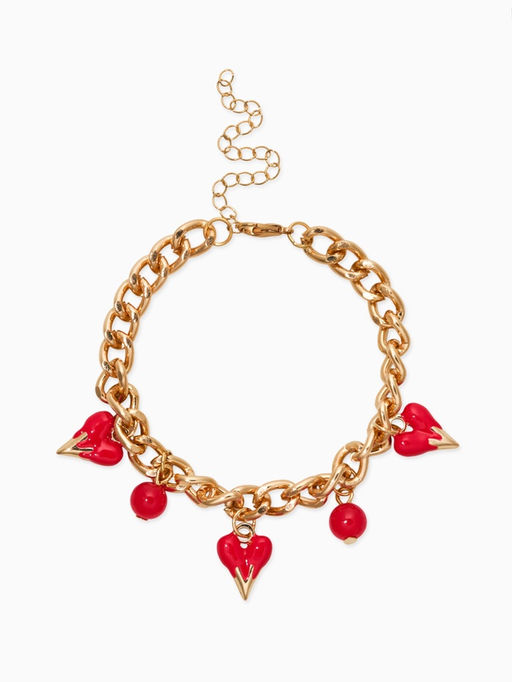 • Браслет на цепи «Вишневый рай. Сердечки», L=17 см, красный в золоте