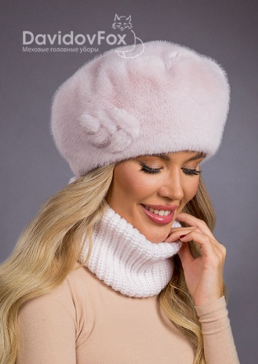 • Шапка Берет экомех с украшением розовый жемчуг