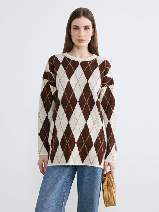 Bisiklet Yaka Baklava Desenli Kad?n Triko Kazak