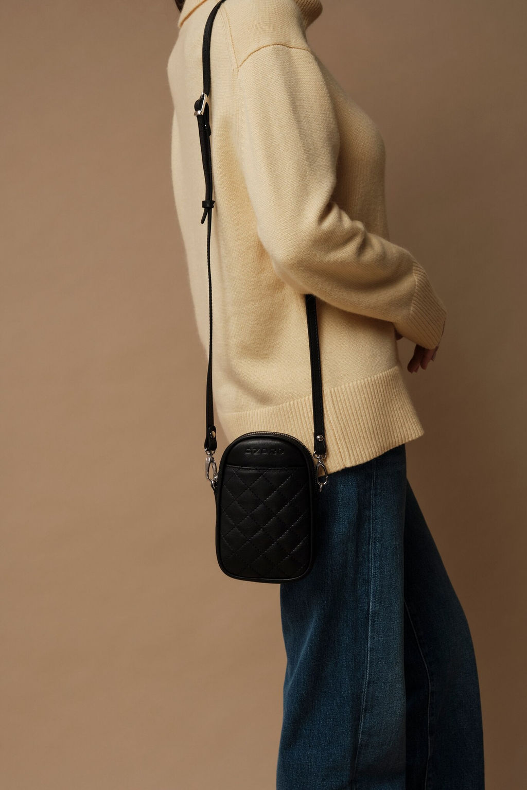 Компактная женская сумка кросс-боди Azaro 30832 в классическом черном цвете для любительниц минимализма и лаконичных аксессуаров. Детали: натуральная кожа, съемный регулируемый ремень, 1 внутреннее отделение, 1 внешний накладной карман, 1 внутренний открытый карман, водонепроницаемая хлопковая подкладка, застежка на молнию. Прямоугольная форма с закругленными краями в компактном размере позволит всегда держать под рукой телефон, кошелёк, помаду и другие мелочи. Качественная кожа с приятной фактурой выглядит дорого и прослужит долго. Стёганый узор придает изысканность и делает сумку визуально интереснее. Универсальный черный цвет легко сочетается с разной одеждой, от нейтральных до ярких оттенков. Такую сумку можно носить со стильными кэжуал-образами или деловым гардеробом. Тонкий, но прочный плечевой ремень регулируется по длине для комфортного ношения, позволяет освободить руки для повседневных дел. Эта сумка станет вашим верным спутником в любой ситуации от утренней прогулки до деловой встречи. Добавьте утончённую деталь в свой гардероб уже сегодня! -- Характеристики -- Тип товара: Женские сумки Цвет: черный Материал: Натуральная кожа Бренд: Azaro Тип: Сумка на плечо, Сумка через плечо Страна-изготовитель: Россия Высота, см: 19 Ширина, см: 13 Глубина, см: 4 Материал подкладки: Хлопок Количество внутренних отделений: 1 Количество внешних карманов, шт: 1 Тип застежки: Молния Формат А4: не вмещает Длина плечевого ремня, см: 120 Вес товара, г: 185 Ручки: Плечевой ремень Озон (наличие): нет Пол: женская коллекция Выгружать товары на сайт: Да Количество внутренних карманов, шт: 1