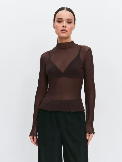 • K13378 Лонгслив прозрачный КОРИЧНЕВЫЙ