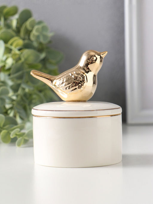 • Шкатулка для украшений керамика с золотой линией «Птичка», с крышкой, 7×7×9 см