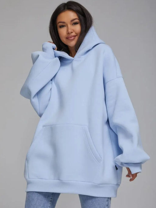 K12104 Толстовка с капюшоном (евро-мех) ГОЛУБОЙ