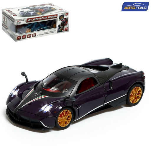 • Машинка металлическая, инерционная, 1:24,открываются двери, капот, багажник, световые и звуковые эффекты, цвет фиолетовый