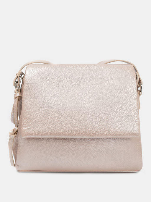 Сумка женская из натуральной кожи с зернистой фактурой и перламутровым покрытием. Закрывается на молнию и крышку-клапан на магнитной кнопке. Внутри и снаружи на тыльной стороне есть два кармана для денег и документов. Длинные пуллеры молний позволят легко открывать сумку даже в дороге. Носить сумку можно на одном плече или через плечо на длинном ремне. Сумка бежевая кроссбоди дополнит повседневные образы в стиле casual.