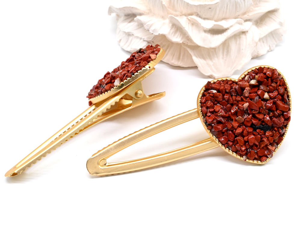 • Зажим для волос Сердце с натуральной красной яшмой 7,5*3,3*2см