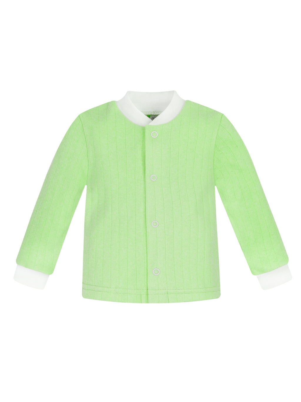 Высококачественная трикотажная кофточка с длинными рукавами будет дарить малышу комфорт во время носки каждый день. Благодаря интерлоку, который используется в изготовлении, изделие довольно приятное и нежное, гладкое и мягкое, гипоаллергенное и износостойкое. Воротничок и манжеты на рукавах выполнены из великолепно тянущейся хлопковой ткани. Посередине на передней стороне проходят застёжки-клёпочки.
