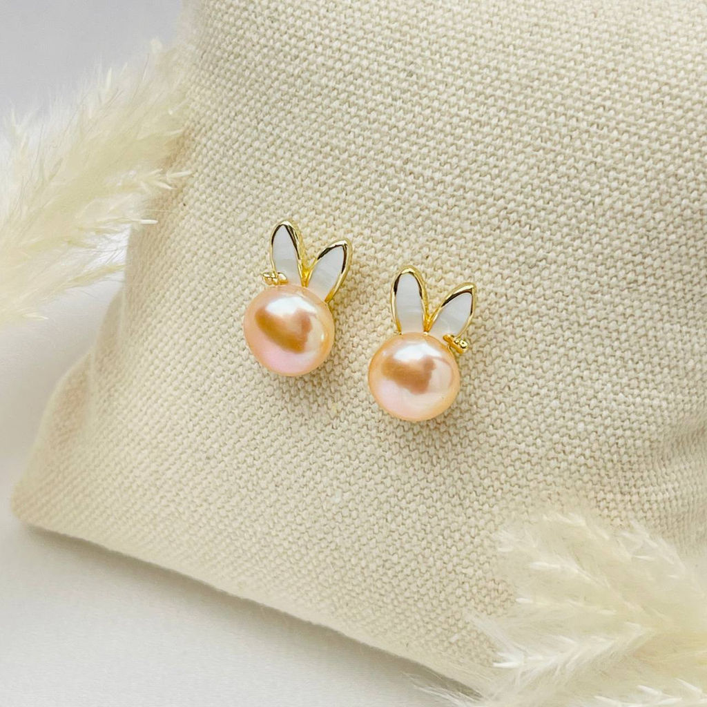 Серьги-пусеты из речного Жемчуга с Эмалью