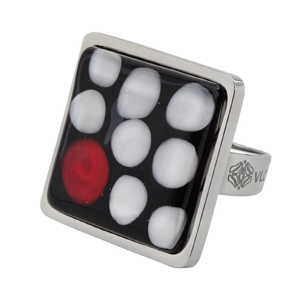 Кольцо изготовлено из муранского стекла и гипоаллергенной ювелирной стали, что очень важно для людей с чувствительной кожей. Металл не темнеет и не подвергается воздействиям окружающей среды, надолго обеспечивая красивый внешний вид изделия. Размер стеклянного элемента - 2,2*2,2 см. Кольцо безразмерное, регулируется с 16 до 19 размера. Вес - 16 гр.