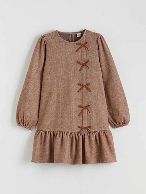 Bisiklet Yaka Fiyonk Detayl? K?z ?ocuk Elbise