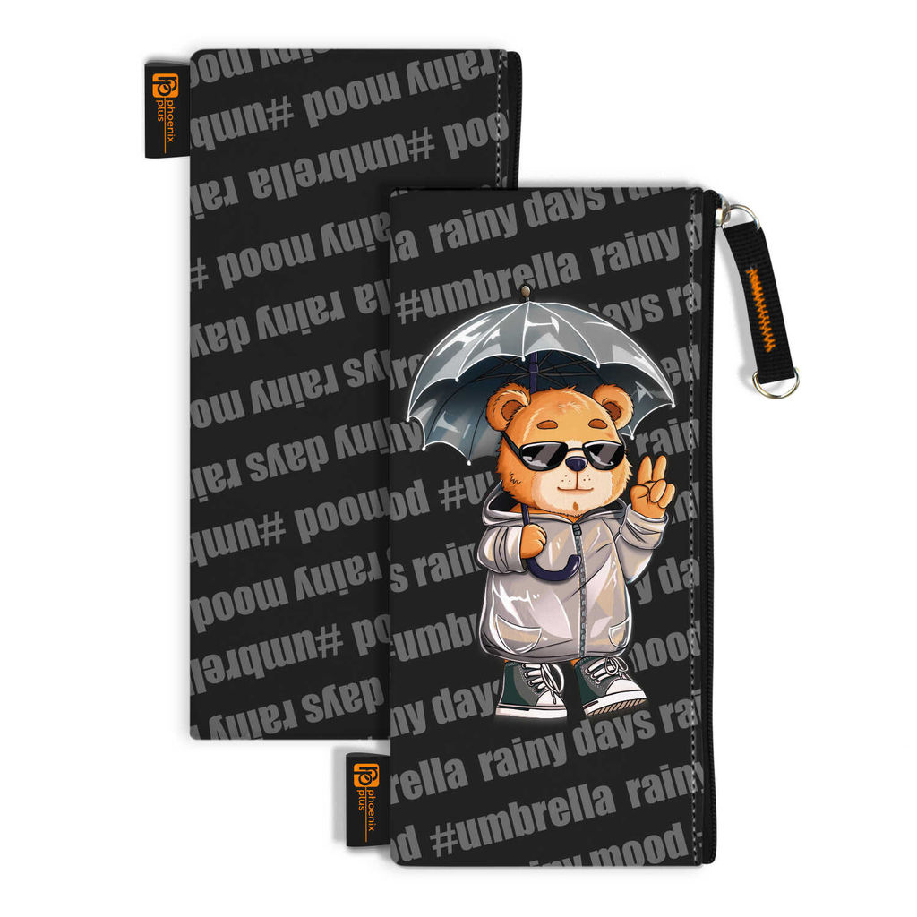Пенал школьный Феникс+, арт.68436/ 30 КРУТОЙ МИШКА (без наполнения, 19.5х9 см, микрофибра на ПВХ-основе, молния, сублимационная печать, ПЭТ-пакет).