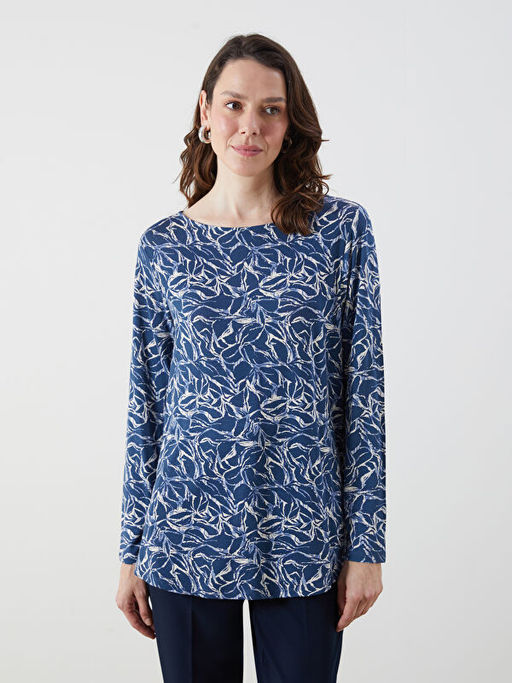 Bisiklet Yaka Desenli K?sa Kollu Kad?n Bluz