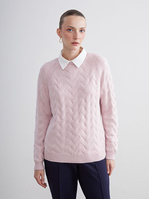 • Bisiklet Yaka Kendinden Desenli Kad?n Triko Kazak