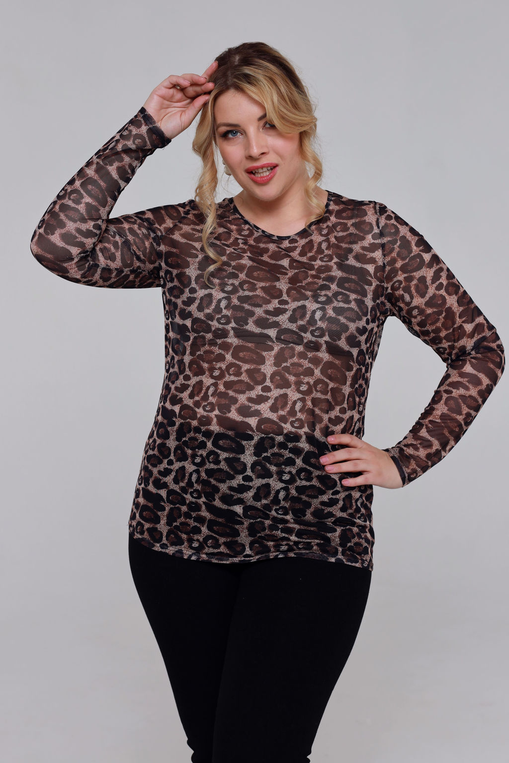 Блузка сетка с принтом "бежевый леопард"
