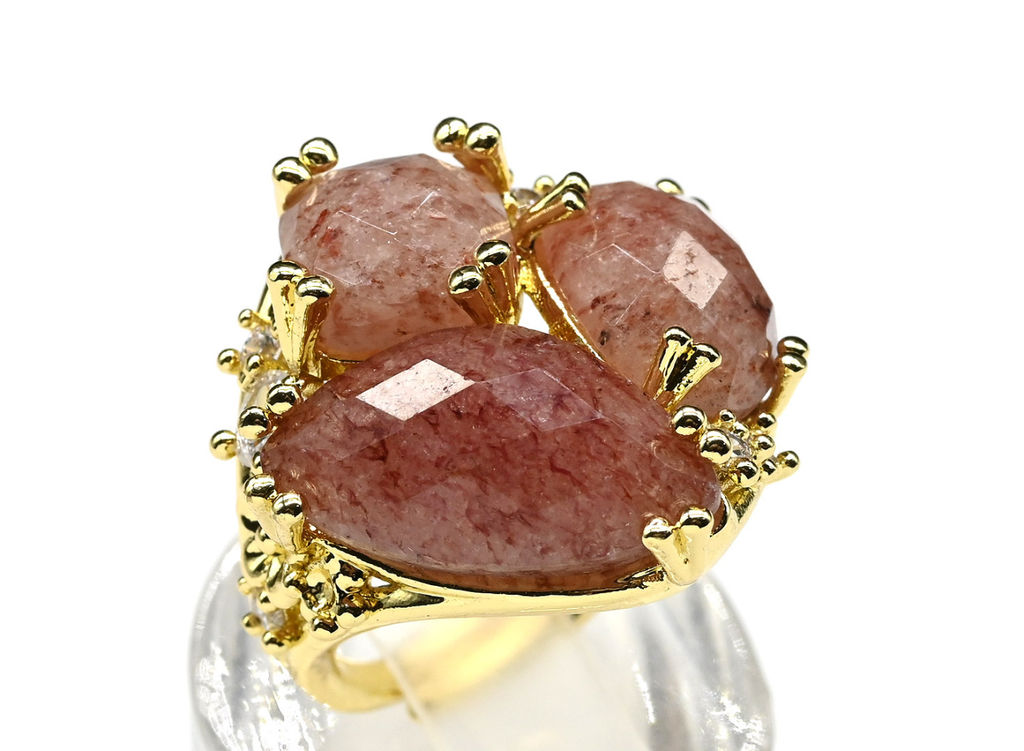 • Кольцо из ювелирного сплава с клубничным кварцем Радуга камня
