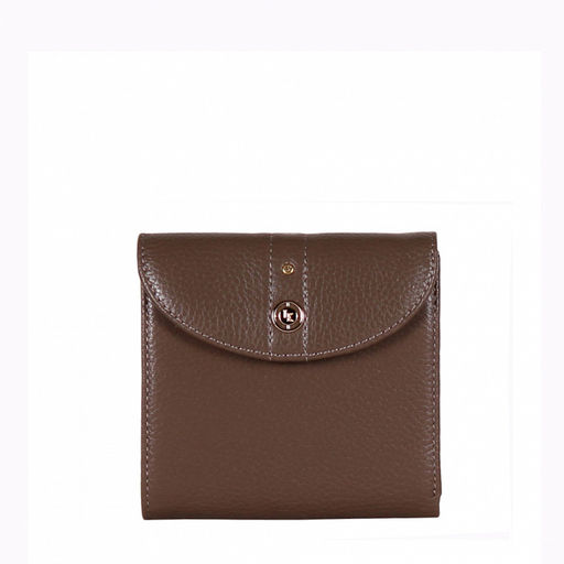 Компактный кошелек складывается пополам, выполнен из натуральной кожи. Дополнен золотистой фурнитурой. Закрывается на клапан.