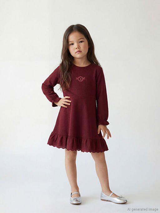 Nak??l? Uzun Kollu K?z ?ocuk Elbise
