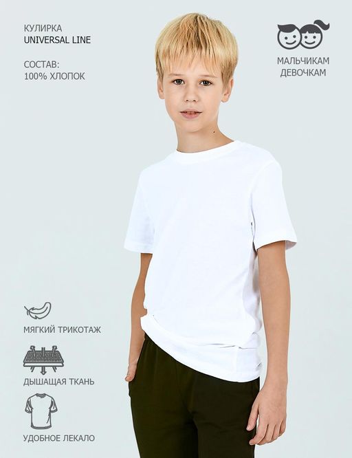 Описание товара Артикул: 6105403; Цвет: Белый; Ткань: Кулирка хлопок; Для кого: Дети; Сезон: Лето; Страна: Россия; Производитель: БВР