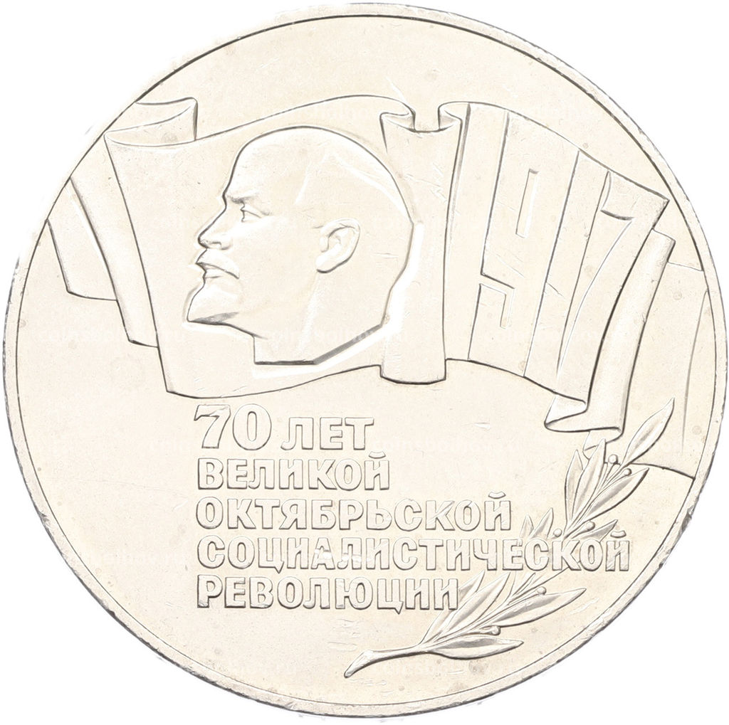• Монета 5 рублей 1987 года 70 лет Октябрьской революции (Шайба)