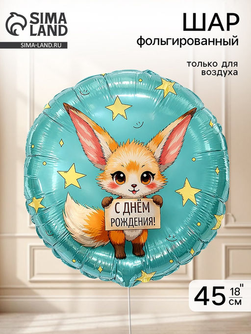 Фольгированный воздушный шар «С днём рождения. Лисичка Фенек» – украшение для любого праздника! Он добавит оригинальности и яркости празднику.Преимущества:Подходит как для воздуха, так и для гелия — можно выбрать формат: устойчивый декор или парящий акцент.Прочный материал, который долго сохраняет форму.Отлично сочетается с другими шарами для создания ярких композиций.Клапан с фиксацией обеспечивает стабильное надувание воздухом и длительное сохранение объёма — подходит для мероприятий продолжительностью более одного дня.Придайте вашему празднику необычный и яркий вид с фольгированным воздушным шаром! Бесплатная доставка: Да.