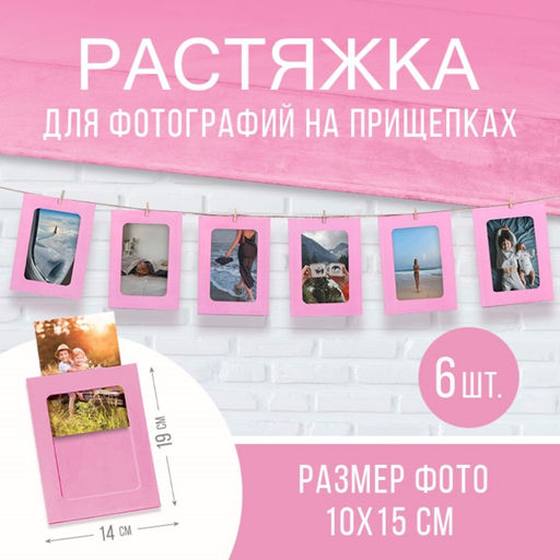 Гирлянда для фотографий с прищепками «Розовая», 6 шт.