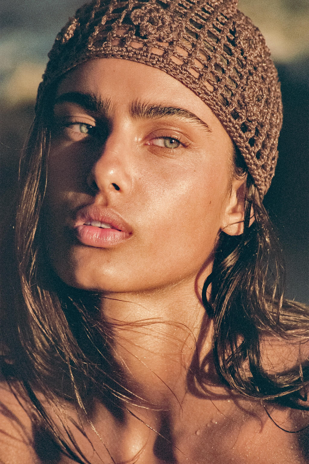 GORRO CASQUETE CROCHET FLORES ABALORIOS / Tostado oscuro