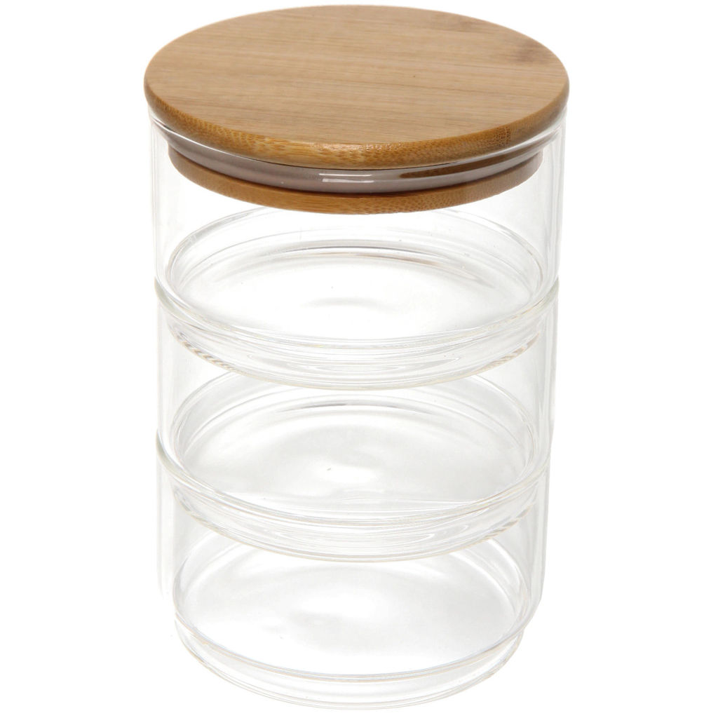 • Банка для продуктов стеклянная "Хай-Тек" в наборе 3*400мл с бамбуковой крышкой 11*6см