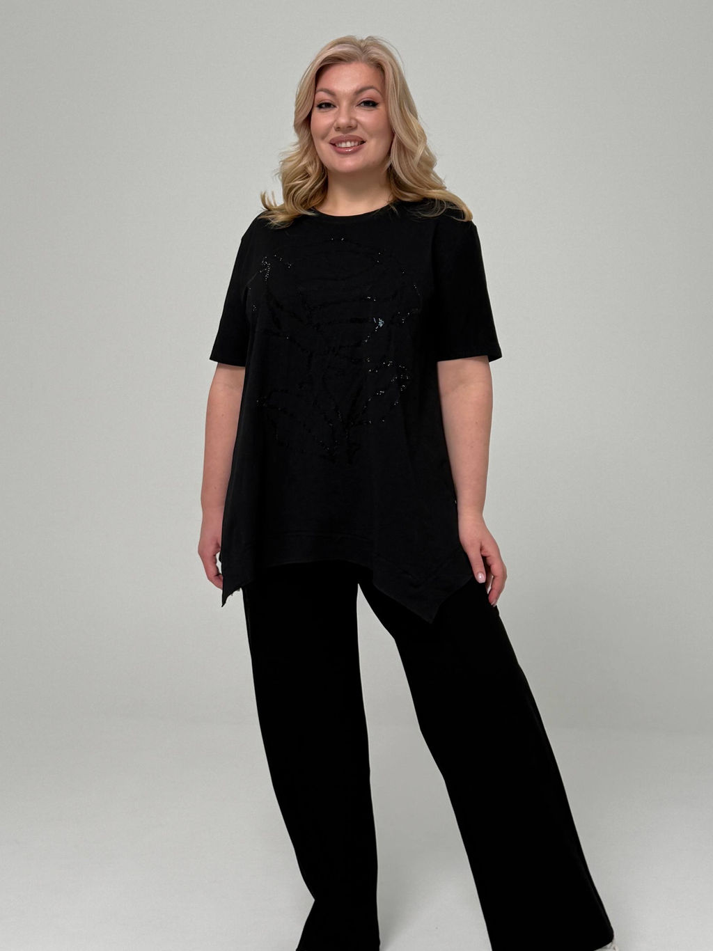 Футболка с цветочным стразовым узором черная­