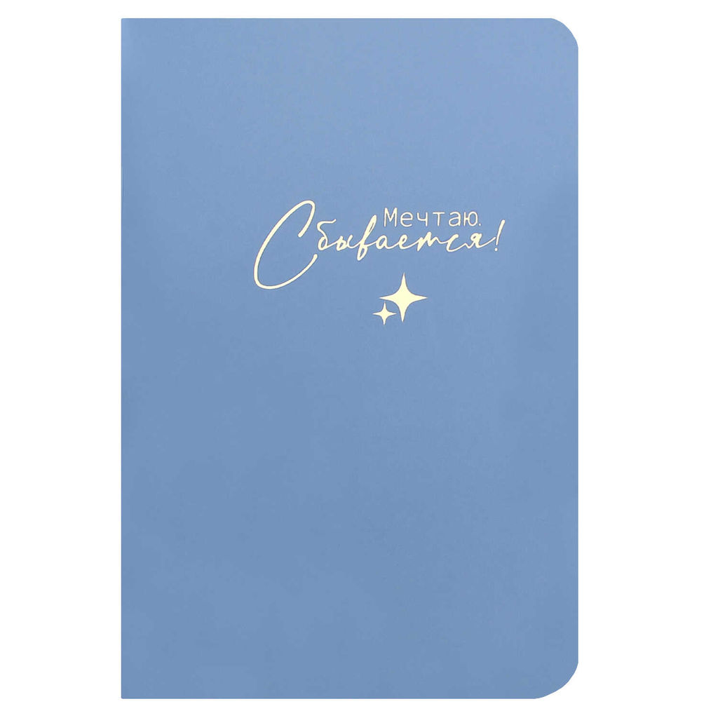 Блокноты арт. 73237 МЕЧТАЮ, СБЫВАЕТСЯ / А6+, 32 л., мягкий переплёт (2 скобы), полноцветная печать (4+4), тиснение фольгой, матовая ламинация. Блок - белый офсет, 80 г/м?, печать в одну краску, дизайнерский блок , скругленные углы/
