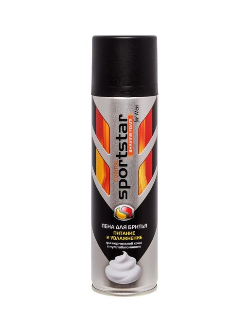Питание и увлажнение. Благодаря сбалансированной формуле, кремообразная пена для бритья Sport Star обеспечивает нежное скольжение лезвия бритвы по поверхности кожи, не травмируя и не раздражая ее, придает ощущение чистоты, свежести и прохлады. Мульти витаминный комплекс, включающий в себя провитамин В5, Витамины увлажняет, укрепляет, восстанавливает кожу, защищает ее от сухости и шелушения.