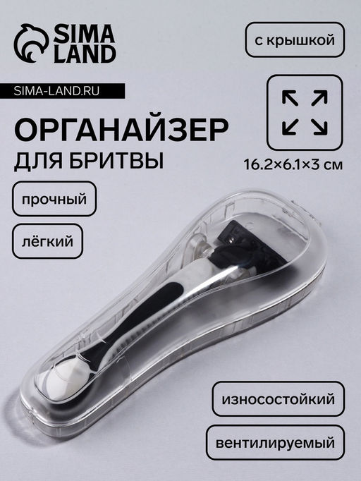 Контейнер для бритвы – это отличный помощник в любой поездке. Футляр компактный и не занимает много места в ручной клади. Органайзер обеспечивает гигиеническое хранение вашей бритвы, защищает её от пыли, лишней влаги, грибка и ржавчины. Держатель внутри футляра крепко фиксирует станок, а плотная крышка не позволяет бритве выпасть их чехла. Аксессуар изготовлен из прочного пластика, легко моется и устойчив к внешним воздействиям. Футляр отлично подойдёт для хранения в ванной комнате. Набор: Нет. Длина, см: 16.2. Ширина, см: 6.1. Количество секций: 1. Вид упаковки: Пакет. Рисунок: Нет. Крышка: Да. Вид крышки: Классическая крышка. Назначение: Для домашних мелочей. Назначение: Для бритв. Особенности: Закрытый. Бесплатная доставка: Да. Размеры товара: 6.1/3/16.2. Примечание: Длина изделия может отличаться от заявленной на ±5 мм.. Примечание: Размеры изделия (длина, ширина) могут незначительно отличаться от указанных (+/- 5 мм)..