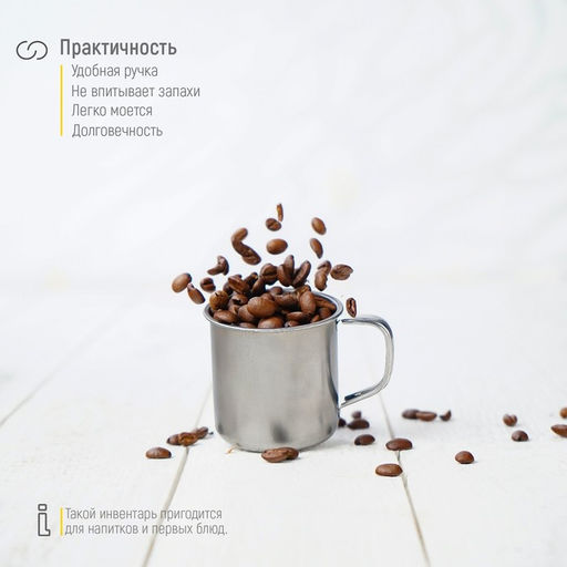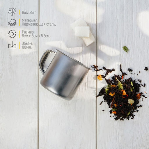 Цена за 2 шт. Кружка Доляна «Мэйли», 100 мл, d=6 см, толщина 0.33 мм, нержавеющая сталь, хромированная