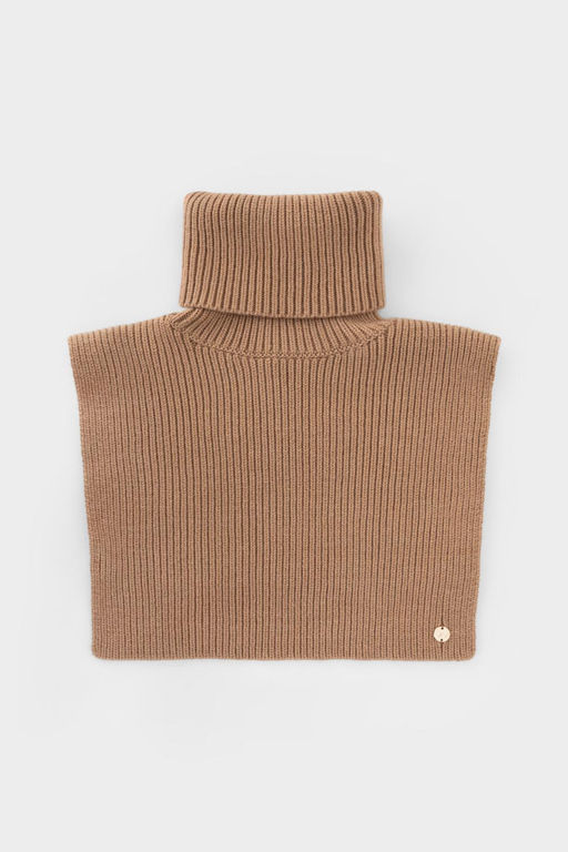 Уютная вязаная манишка с высоким воротником из шерсти и акрила. Шерсть в составе хорошо удерживает тепло, а волокна акрила делают изделие мягким и предотвращают деформацию и появление катышек. Лаконичный крой хорошо сочетается с верхней одеждой.