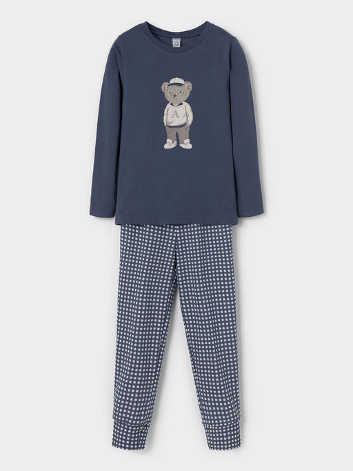 Пижама для мальчика из натурального хлопка. Джемпер с длинными втачными рукавами и брюки с эластичной резинкой в поясе. Мягкие манжеты по низу брюк сделаны из материала в рубчик. Оригинальная набивка и принт выполнены из стойких текстильных гипоаллергенных красителей. Изделие сохраняет цвет и форму после многократных стирок. Все трикотажные полотна производятся в соответствии с нормами швейцарского сертификата ЭкоТекс.. Состав: 100% хлопок