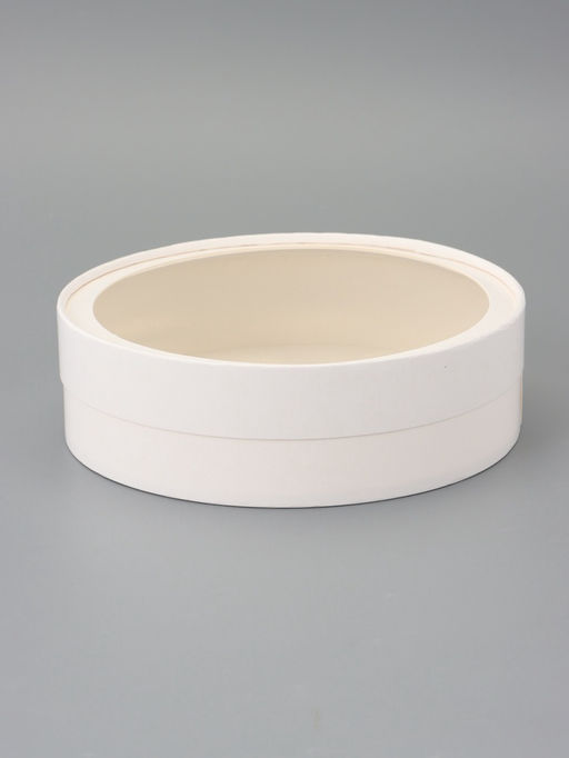 • Коробка подарочная круглая с окном, завальцованная, белая, 20×6 см
