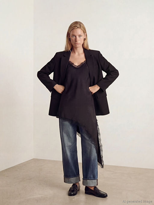 • V Yaka Dantel Detayl? Saten Bluz